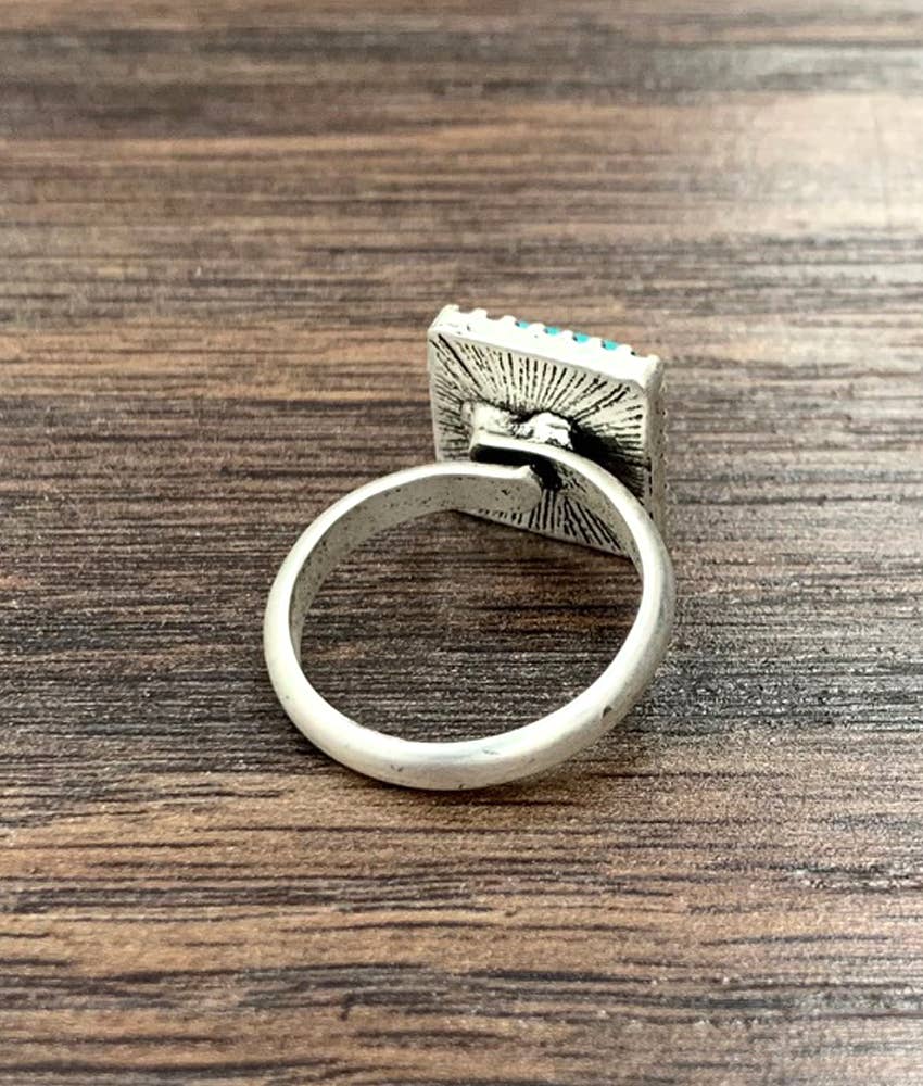 0.5" Long, 10mm Square Turquoise Ring, Brass Single Adjustable Band